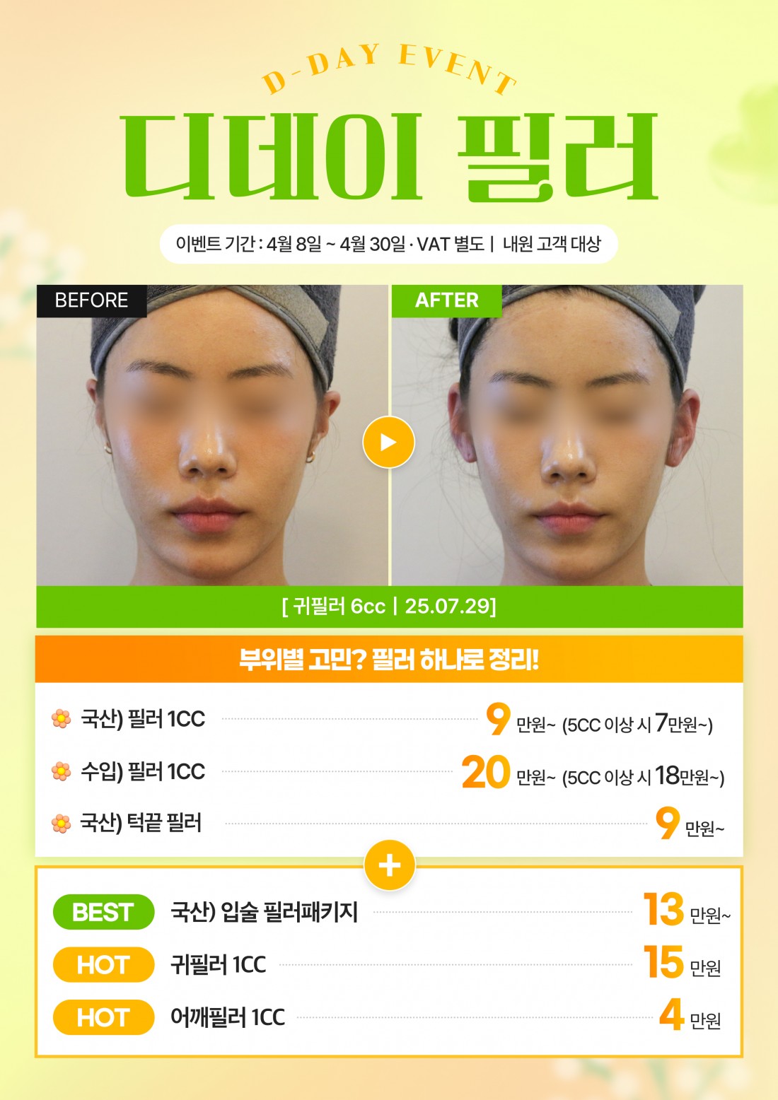 페이지 정보 작성자 최고관리자 댓글 0건 조회 50회 작성일 26-04-07 18:48 목록 본문 디데이의원<필러 이벤트> 2026-04-08 ~ 2026-04-30 이벤트 신청하기 부가세 별도 이벤트 신청하기 다음글디데이의원<보톡스 이벤트> 26.04.07 댓글 0 댓글목록 등록된 댓글이 없습니다.